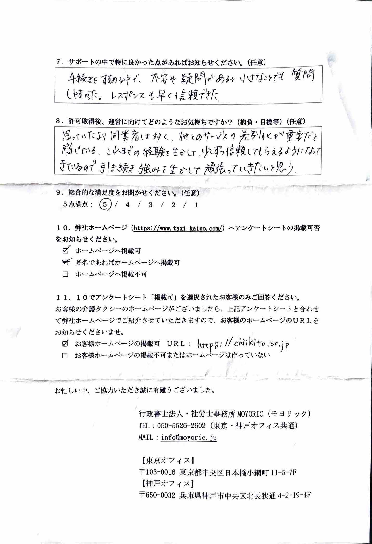 Q. 弊社の介護タクシー許可申請代行のサポートはいかがでしたか?(対応、料金等)
